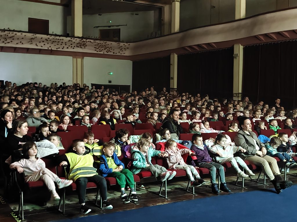 Dzieci z ogromnym entuzjazmem uczestniczyły w spektaklu, aktywnie odpowiadały na pytania aktorów i prezentowały szeroką wiedzę z zakresu ekologii. Ich zaangażowanie, żywiołowe reakcje oraz szczera radość pokazały, jak ważny jest dla nich temat ochrony środowiska i jak świadomie podchodzą do dbania o planetę.